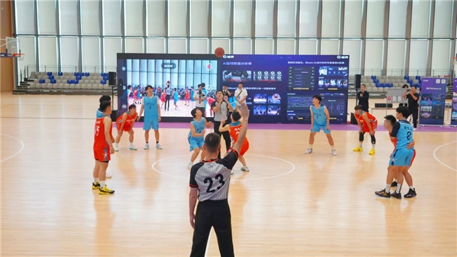 随后的“智汇杯”篮球友谊赛,成为ShootzQ1的实战舞台:每一个精彩进球经设备捕捉后,AI自动剪辑的高光时刻实时呈现在大屏幕上,科技与运动的碰撞点燃全场热情,让观众直观感受AI体育的独特魅力。