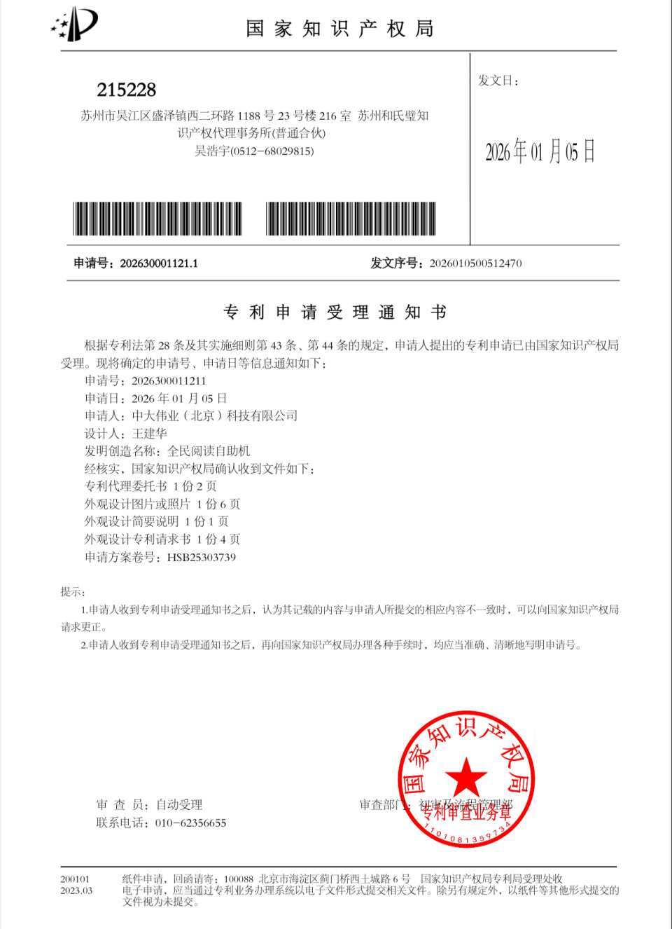 (中大伟业全民阅读自助机版权国家版权登记证)